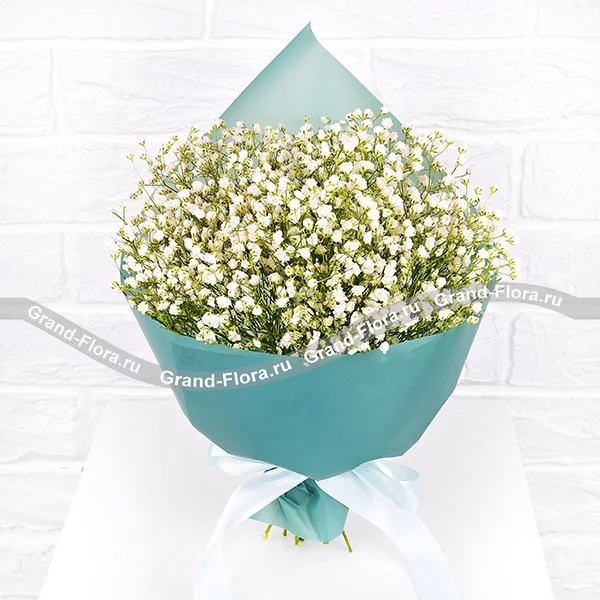 Стандартный: гипсофила - 7 шт., упаковка, лента. Примерный размер 30Х30 см.